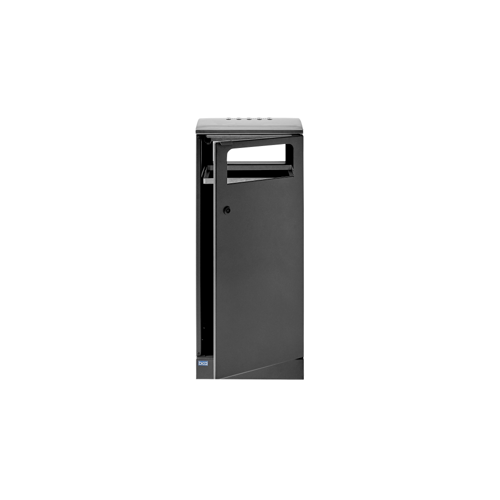 Der flexible Abfallbehälter von Bica sorgt für eine einfache und benutzerfreundliche Abfalltrennung im Freien. Die Oberseite fungiert als Aschenbecher, sodass der Raucher die Möglichkeit hat, die Zigarette auszudrücken. Der Abfallbehälter ist beidseitig mit Einsätzen ausgestattet, an denen eine Metallklappe angebracht werden kann, damit Vögel nicht in den Abfall gelangen. Der Abfallbehälter verfügt außerdem über eine Fronttür zur einfachen Entleerung, die mit einem Schlüssel geöffnet werden kann. Das Bica-Modell 5078 ist mit anderen Bica-Modellen in gleicher Tiefe kombinierbar.