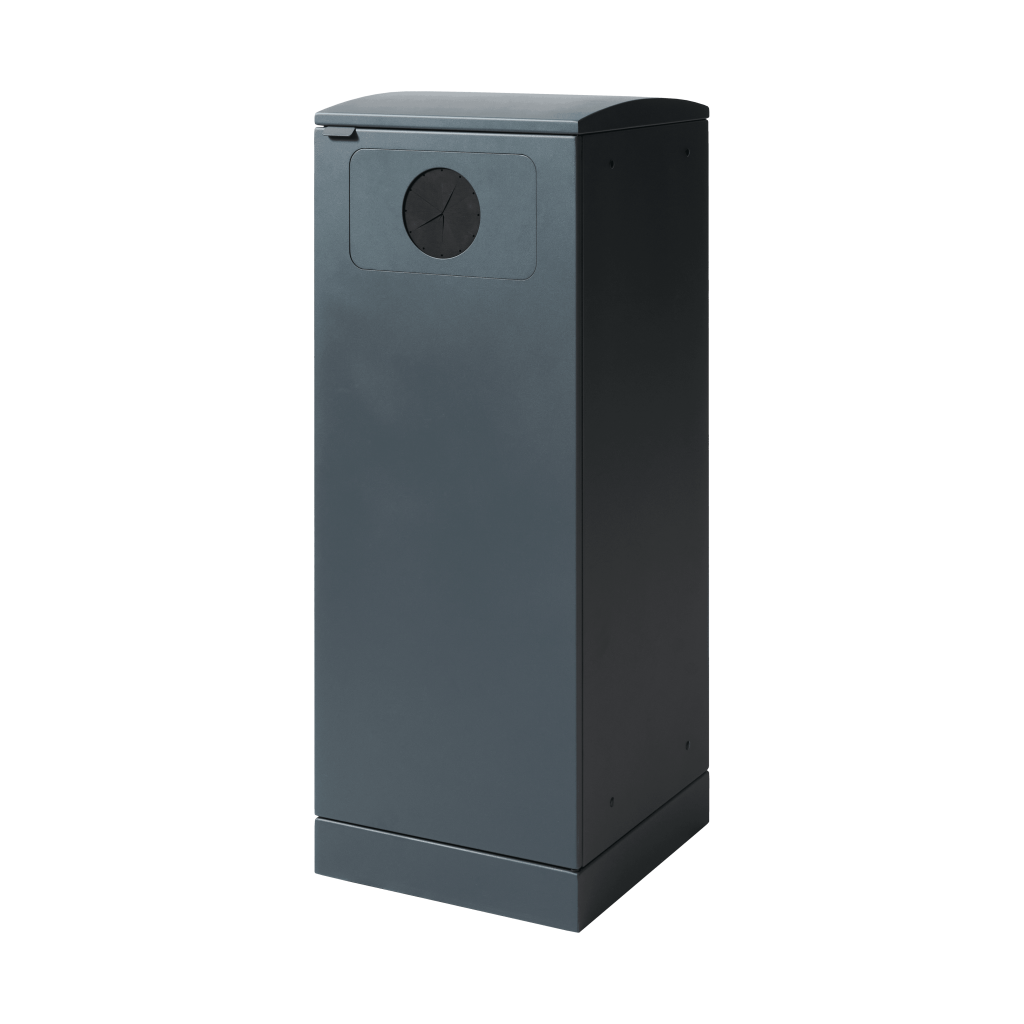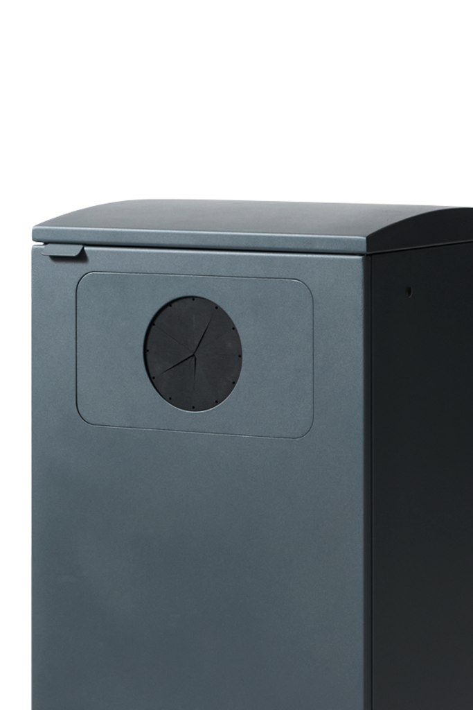 Um ein stilvolles Design, eine lange Lebensdauer und minimalen Wartungsaufwand zu gewährleisten, ist der Abfallbehälter aus pulverbeschichtetem Stahl gefertigt. Die klaren Linien des Designs machen ihn zu einem Abfallbehälter, der sich natürlich in die Einrichtung einfügt. Keine sichtbaren Füße oder Scharniere sorgen für einen minimalistischen und eleganten Ausdruck.