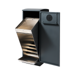 Ein minimalistisch und ergonomischer Abfallbehälter von Bica sorgt für eine einfache und benutzerfreundliche Abfalltrennung im Innenbereich. Der Abfallbehälter ist mit Beiseitige Öffnungen konzipiert, wobei eine starke Gummimatte den Einzeleinschub von Flaschen und Dosen gewährleistet. Die Öffnungen können gegen einen völlig offenen Wurf ausgetauscht werden. Der Abfallbehälter ist mit einem kippbaren Einsatz, einem stabilen Beutelhalter und einer Fronttür ausgestattet, um ein ergonomisch korrektes Entleeren ohne schweres Heben zu gewährleisten.