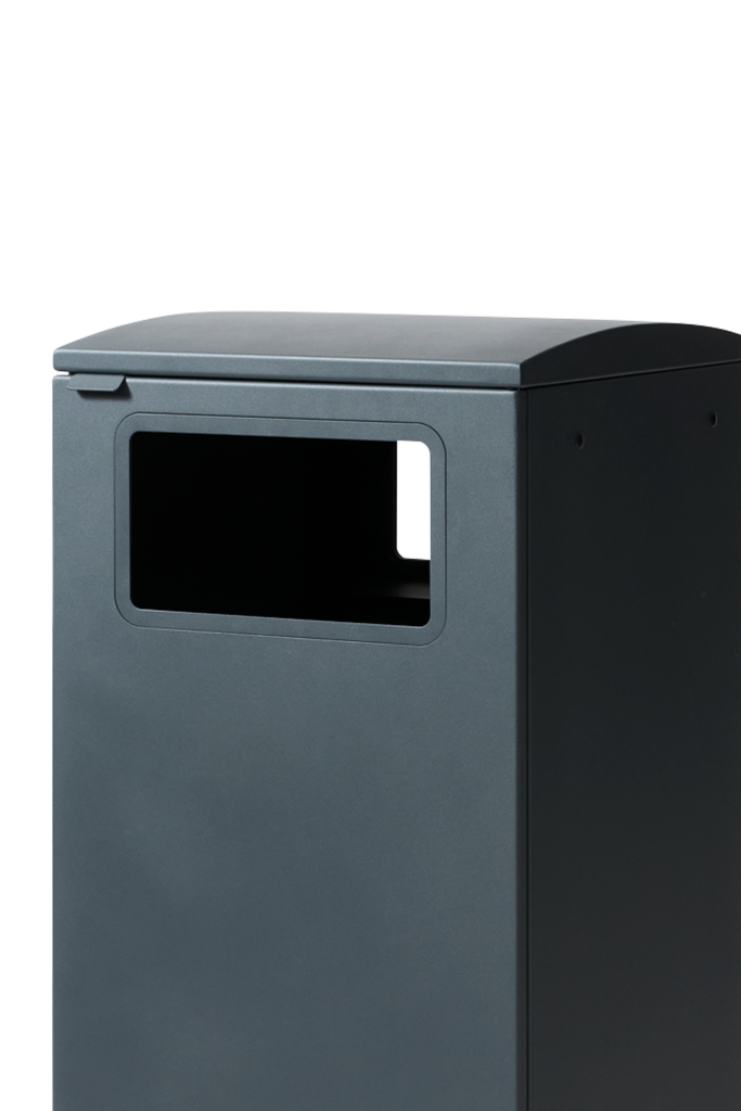 Um ein stilvolles Design, eine lange Lebensdauer und minimalen Wartungsaufwand zu gewährleisten, ist der Abfallbehälter aus pulverbeschichtetem Stahl gefertigt. Die klaren Linien des Designs machen ihn zu einem Abfallbehälter, der sich natürlich in die Einrichtung einfügt. Keine sichtbaren Füße oder Scharniere sorgen für einen minimalistischen und eleganten Ausdruck.