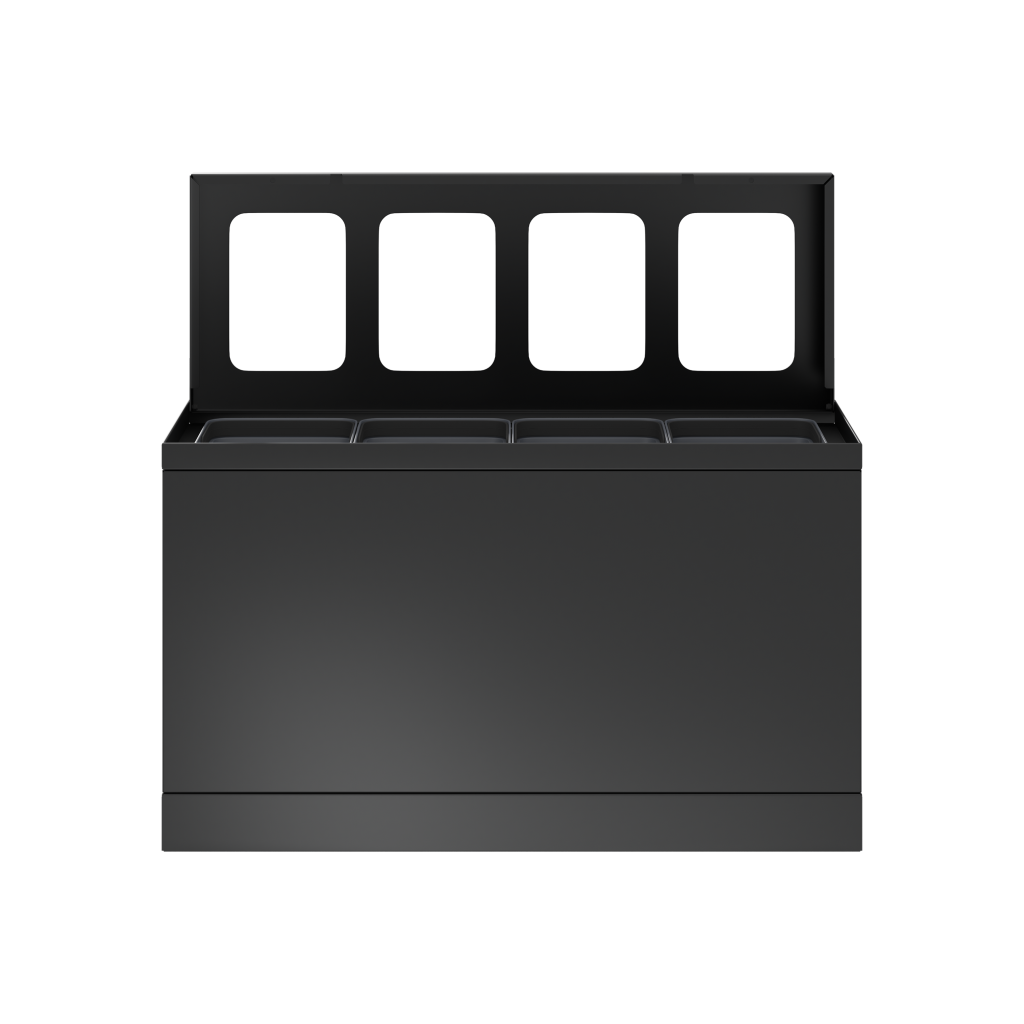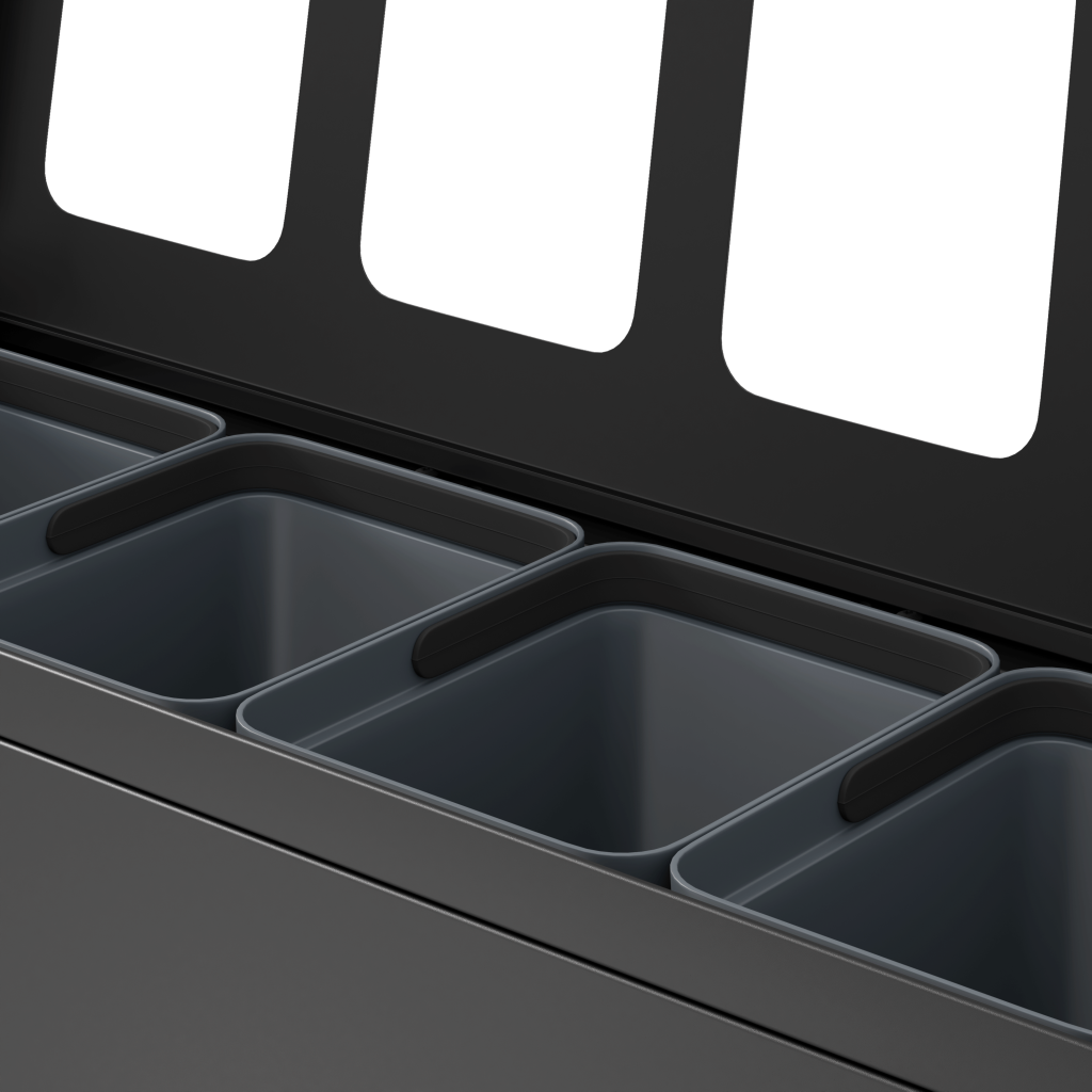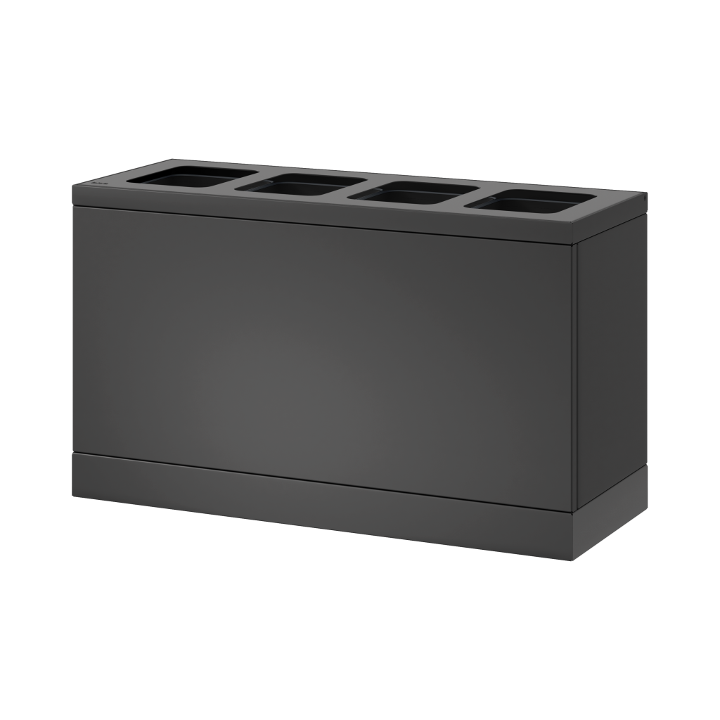 Das elegante Abfallsystem von Bica sorgt für eine einfache und benutzerfreundliche Abfallsortierung im Unternehmen. Das Abfallsystem ist mit 4 Fraktionen mit 10-Liter-Innenbehältern ausgelegt. Besonders geeignet für kleinere Büroumgebungen, Teeküchen und Empfangsbereiche mit begrenzten Abfallmengen.