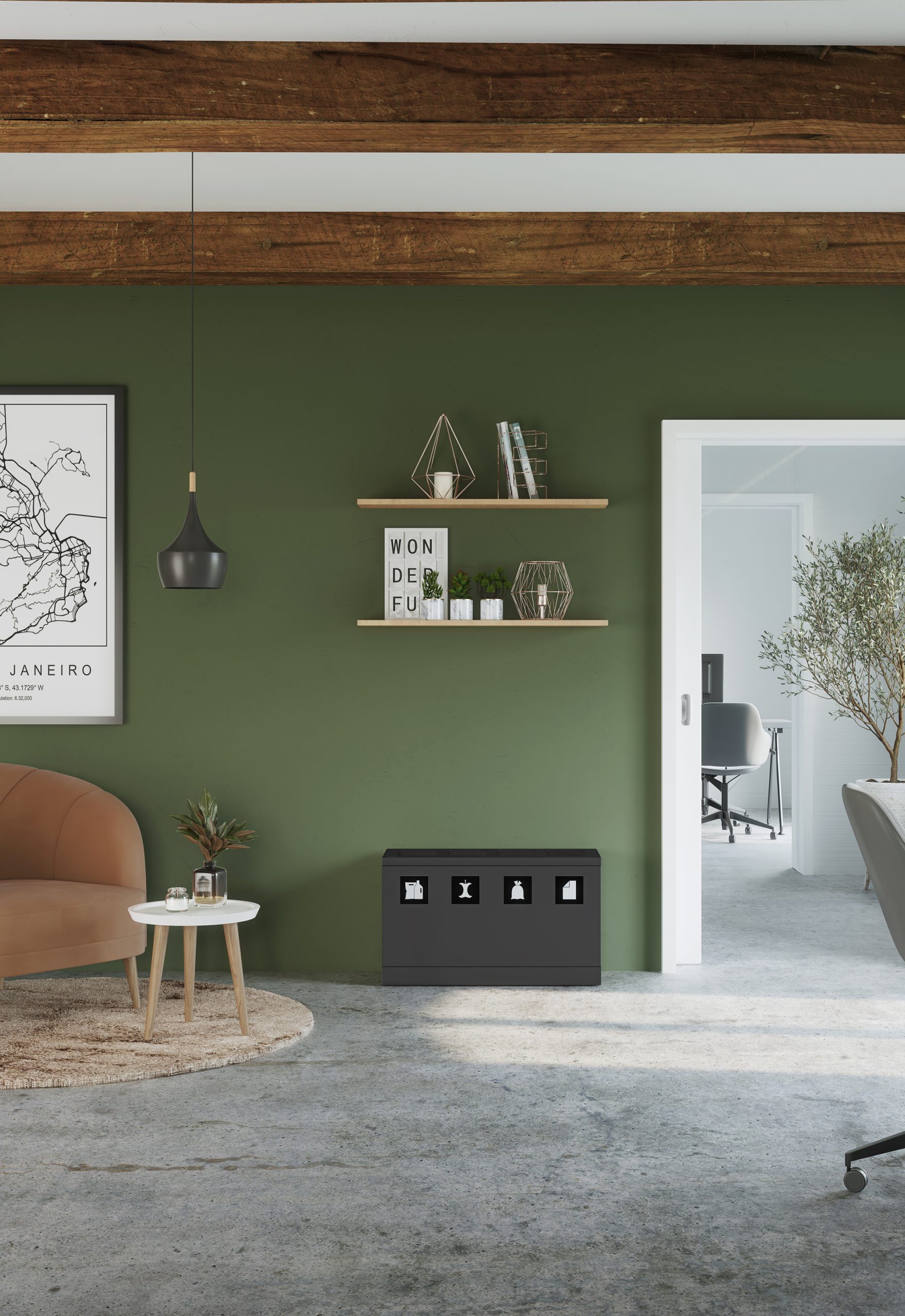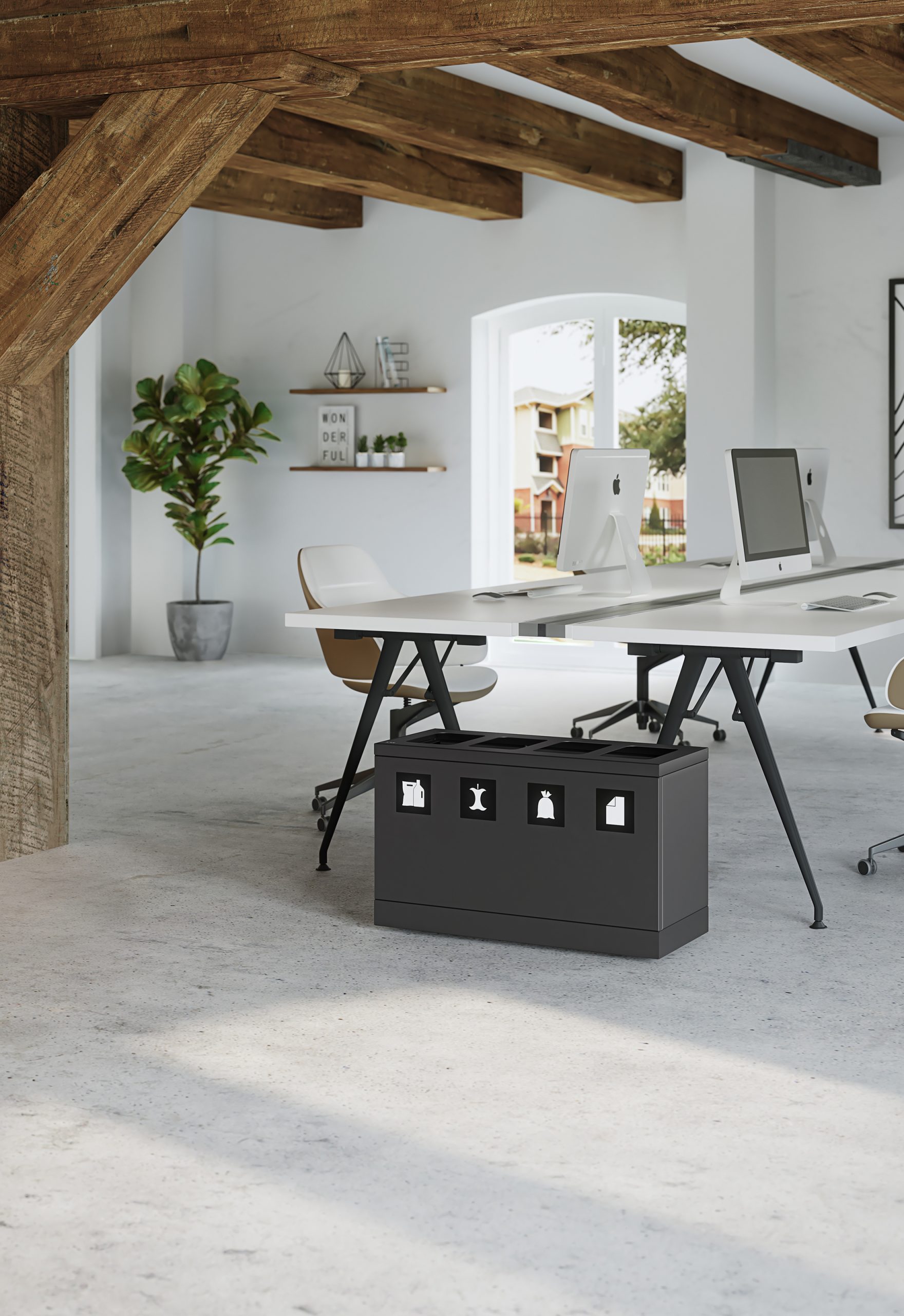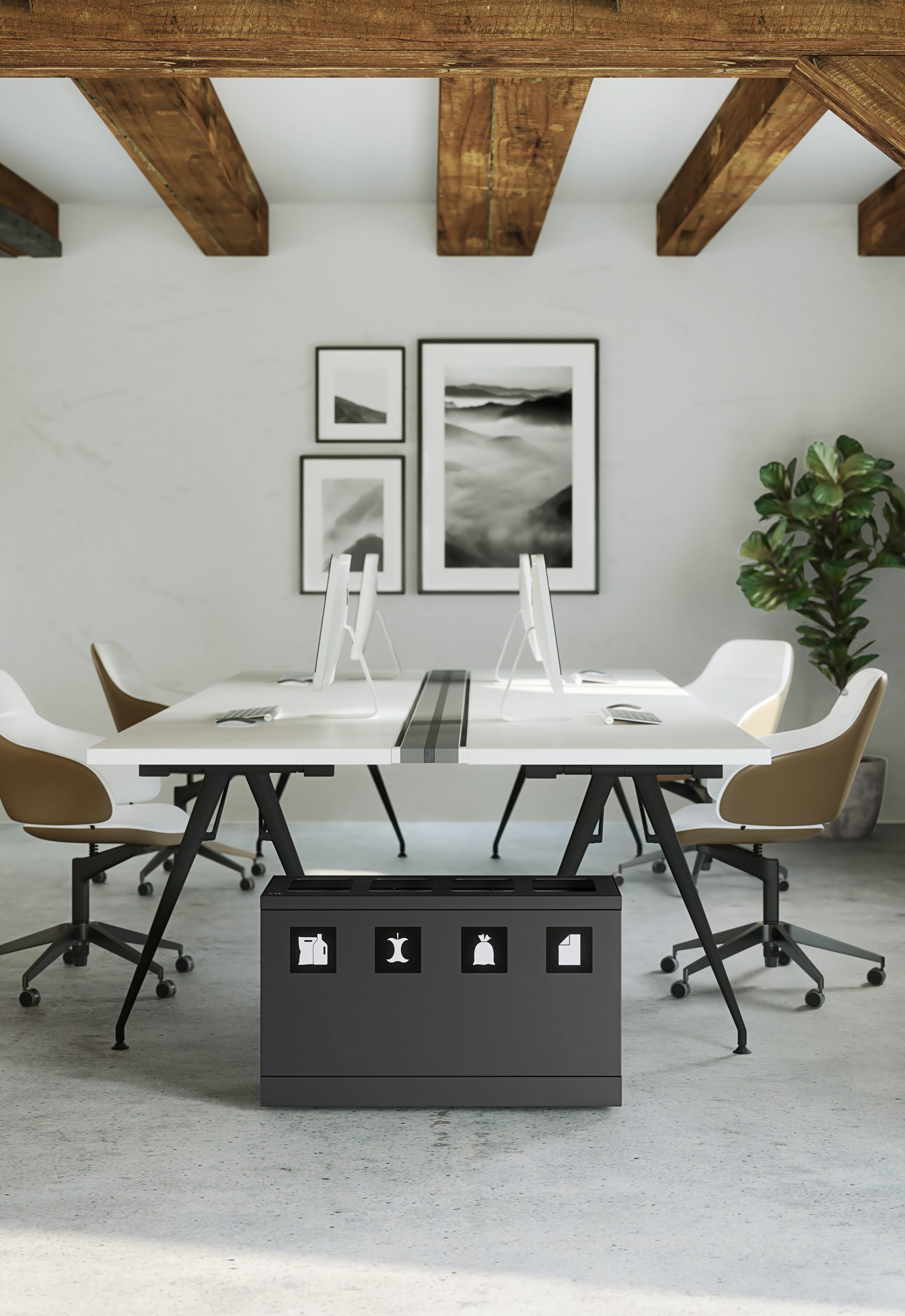 Das elegante Abfallsystem von Bica sorgt für eine einfache und benutzerfreundliche Abfallsortierung im Unternehmen. Das Abfallsystem ist mit 4 Fraktionen mit 10-Liter-Innenbehältern ausgelegt. Besonders geeignet für kleinere Büroumgebungen, Teeküchen und Empfangsbereiche mit begrenzten Abfallmengen.