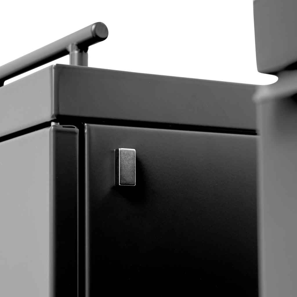 Für eine ergonomisch korrekte Entleerung ohne schweres Heben ist der Abfallbehälter mit Fronttüren mit Soft Close ausgestattet. Der Abfallbehälter ist mit einem integrierten und stabilen Beutelhalter ausgestattet, damit der Beutel an Ort und Stelle bleibt. Der Deckel verbirgt auch den Beutel, sodass der Abfallbehälter ein stilvolles Design behält. Der Abfallbehälter ist mit verstellbaren Füßen ausgestattet, die hinter dem Sockel verborgen sind.