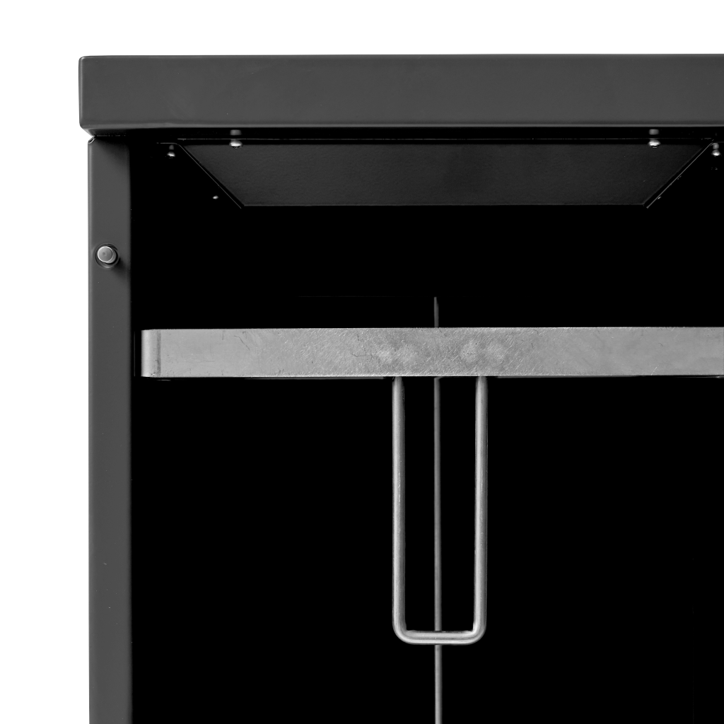 Das Abfallsystem ist mit Vordertüren mit Soft Close Funktion für eine ergonomisch korrekte Entleerung ohne schweres Heben ausgestattet. Das Abfallsystem ist mit integrierten und stabilen Beutelhaltern ausgestattet, sodass der Beutel an Ort und Stelle bleibt. Im Deckel ist ein Gasdämpfer eingebaut, der für ein geräuschloses und geräuschloses Schließen sorgt, außerdem verbirgt der Deckel die Beutel, sodass das Abfallsystem ein stilvolles Design behält. Das Abfallsystem ist mit verstellbaren Füßen ausgestattet, die hinter dem Sockel versteckt sind.