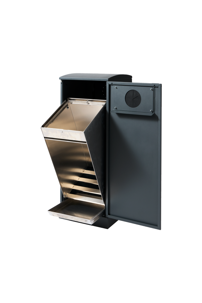 Der Abfallbehälter wurde mit einem Beutelhalter mit Kippfunktion entwickelt, um dem Betriebspersonal optimale Arbeitsbedingungen zu bieten, da die Behälter bis zu 5-mal täglich geleert werden. Die Kippfunktion ermöglicht einen einfachen Beutelwechsel ohne schwere Hebevorgänge in ungünstigen Positionen. Zudem war ein wichtiger Faktor, dass Bicas Abfallbehälter keine scharfen Kanten und sichtbaren Scharniere aufweisen.